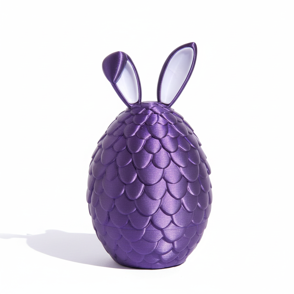 Caixa decorativa em forma de ovo 💜 com orelhas de coelho e textura de escamas